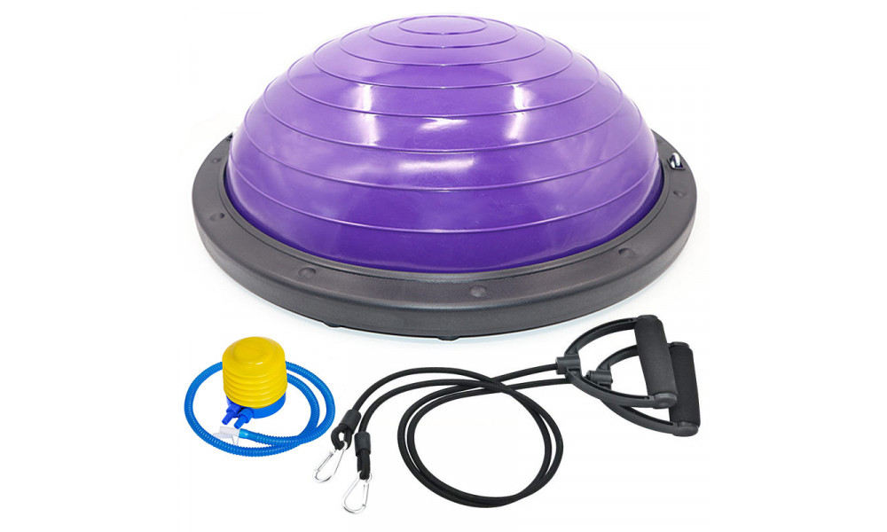 Полусфера BOSU гимнастическая, 58см., (фиолет) в комплекте с эспандером и насосом (B31658) BOSU044-17